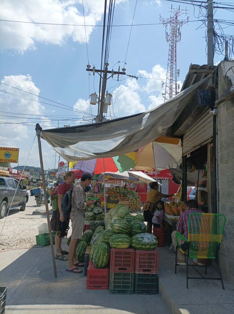 we walked to the market in santa elena, bought vegetables and fish and some mango. as on most days flores was very sunny and warm and colorful.